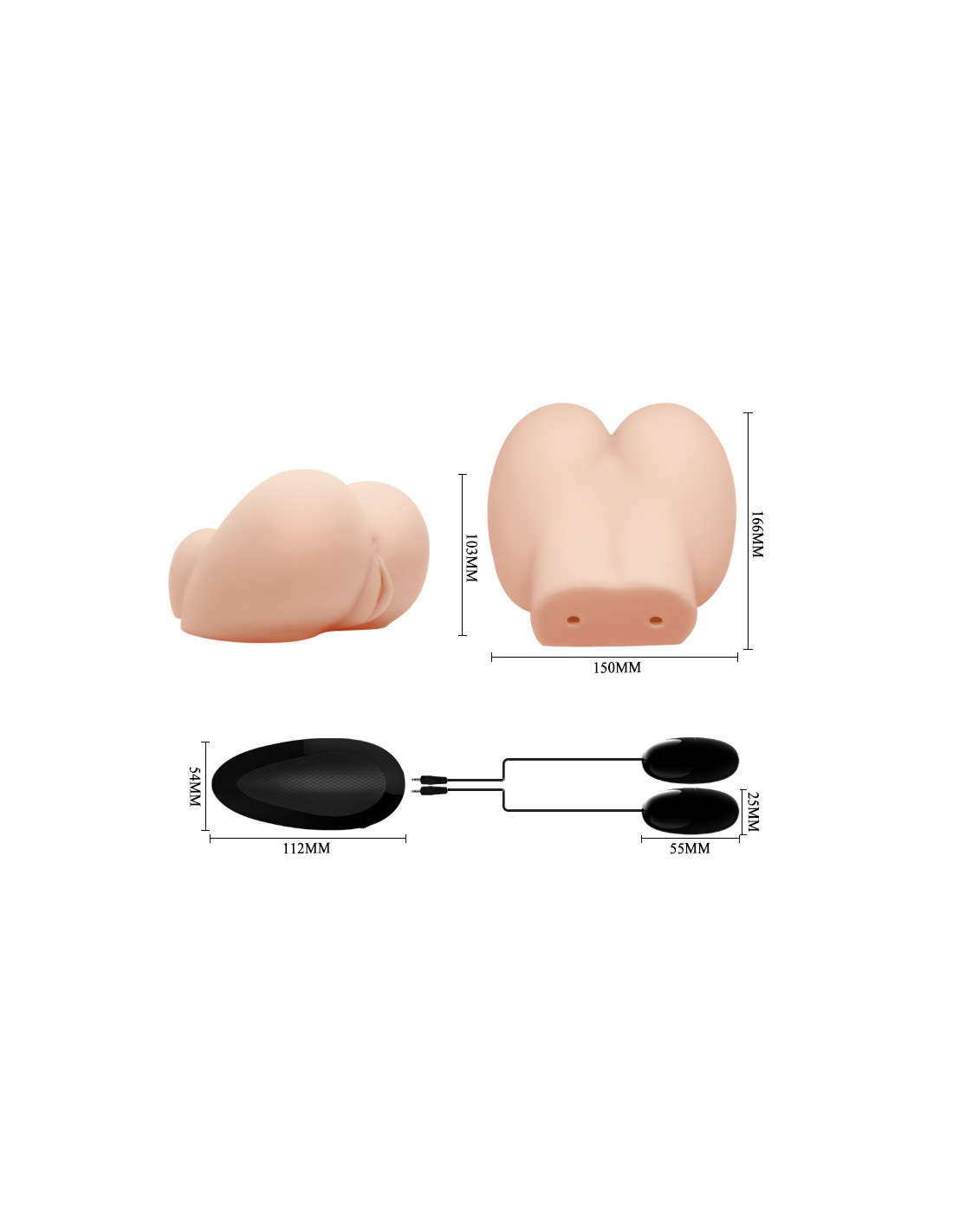 Chcesz przeżyć realistyczne doświadczenie, jak nigdy dotąd? Teraz jest to możliwe dzięki tej realistycznej pochwie i odbycie zaprojektowanej ze wszystkimi szczegółami i wykonanej z materiałów imitujących ludzką skórę. Zawiera również inny tunel wewnętrzny dla różnych doznań. Wybierz między pochwą a odbytem i ciesz się! ale to nie wszystko, ponieważ zawiera dwie potężne kule, którymi możesz sterować za pomocą pilota, aby uzyskać nieograniczoną przyjemność !!Cechy: Wibracje kontrolowane za pomocą pilota Baterie do pilota: 3xAAA Teksturowane tunele wewnętrzne Wyczyść po użyciu Zalecane jest użycie smaru